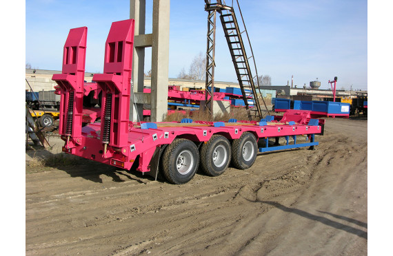45000 кг, шины 445/65R22,5 или 395/85R20 / 6+1, платформа 10300 (11080 до трапов) x 2500 с уширителями до 3000 мм, механические трапы, ССУ 1510 мм, рессорная подвеска, съемные стойки 1500 мм