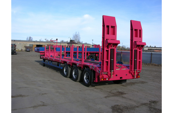 47000 кг, шины 395/85R20 или 445/65R22,5 / 6+1, платформа 11502 по трапам) x 2500 с уширителями до 3000 мм, треугольные аппарели, ССУ 1530 мм, рессорная подвеска, раздвижные коники 1500 мм