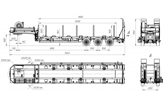 39000 кг, шины 385/65R22,5 или 445/65R22,5 / 6+1, платформа 11080 до трапов) x 2500 с уширителями до 3000 мм, ССУ 1510 мм, пневматическая или рессорная подвеска, съемные стойки 1500 мм, механические трапы